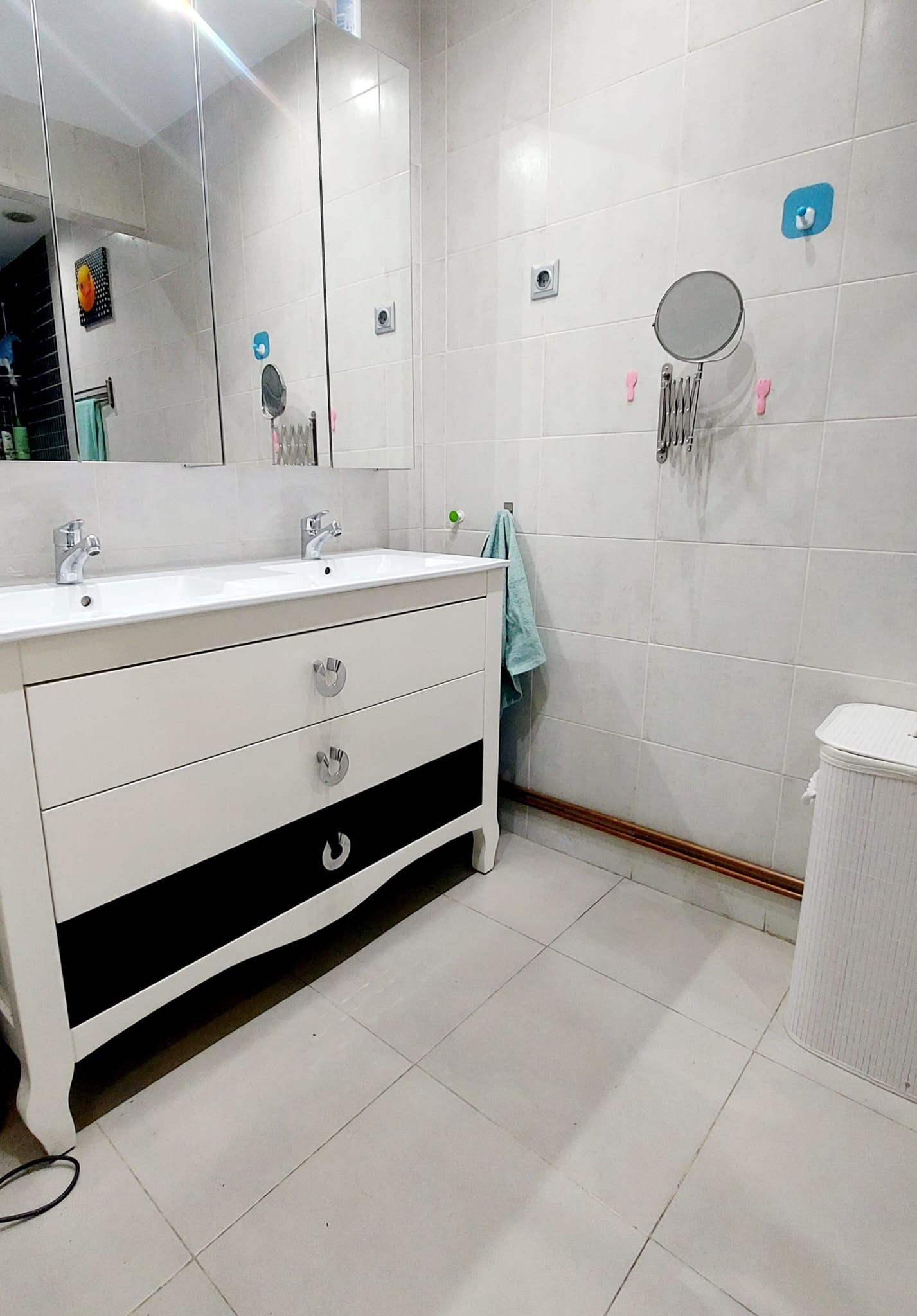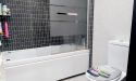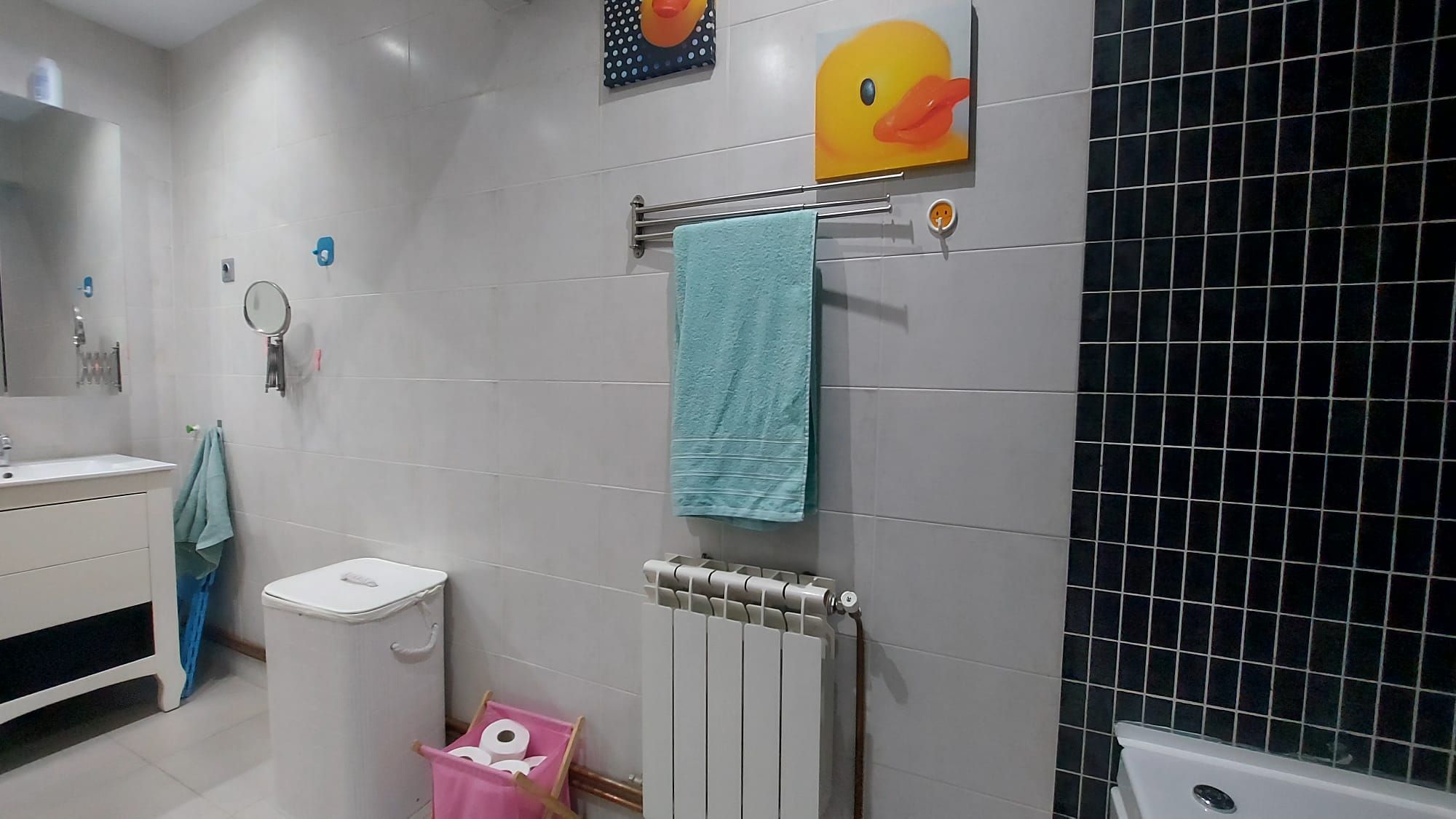 El baño independiente y situado entre las habitaciones.