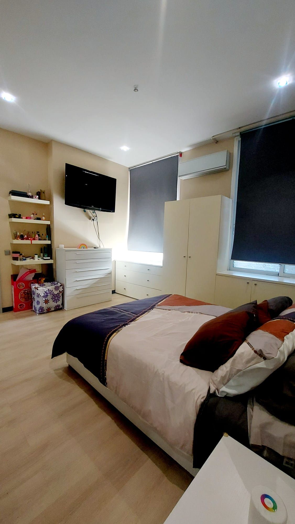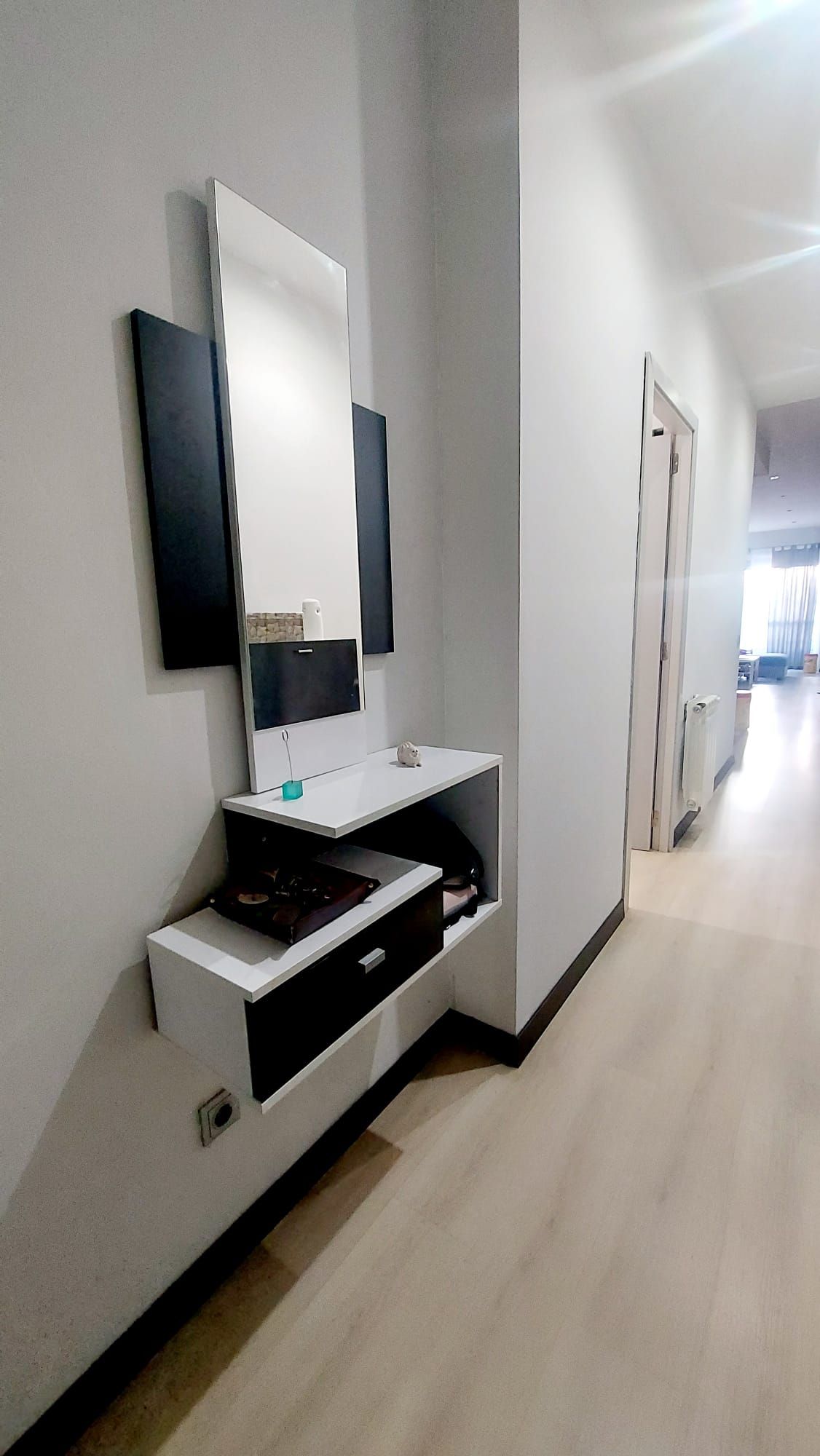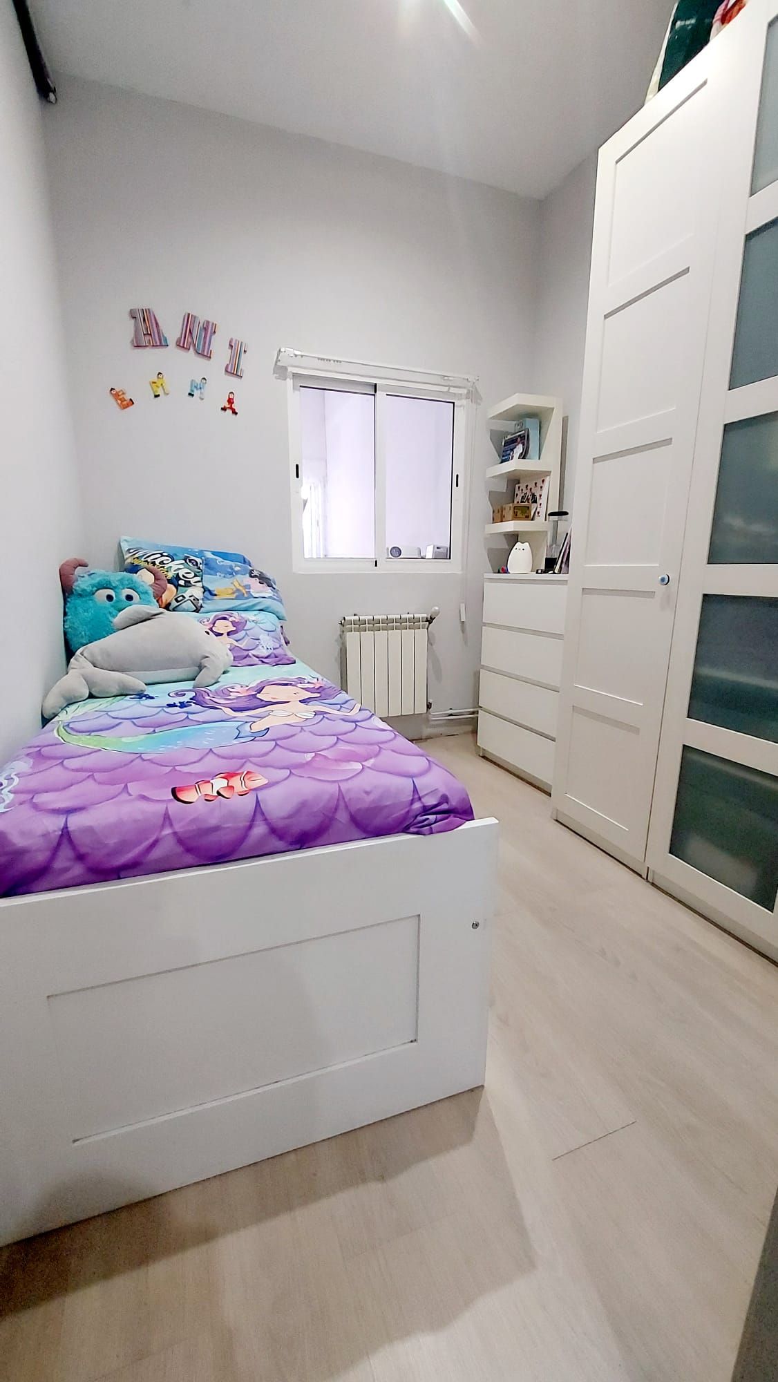 Entrando en la vivienda encontramos puerta principal blindada con cerradura de seguridad, el hall de entrada nos da acceso a mano izquierda al dormitorio principal, que cuenta con dos amplios ventanales y armarios a medida.