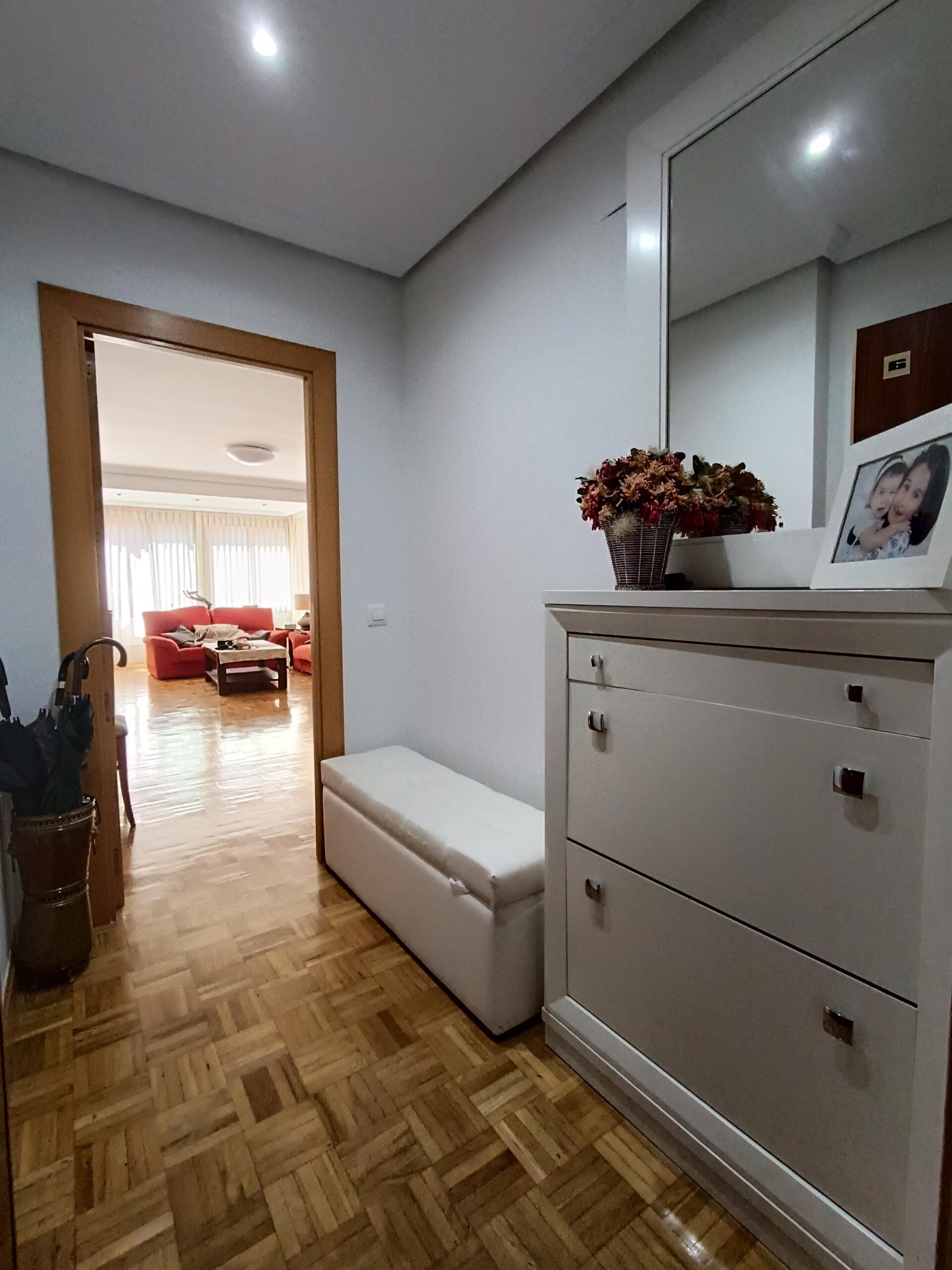 Accedemos a la propiedad a través de un hall recibidor que nos lleva a un espléndido salón, lleno de luz natural gracias a sus amplios ventanales.