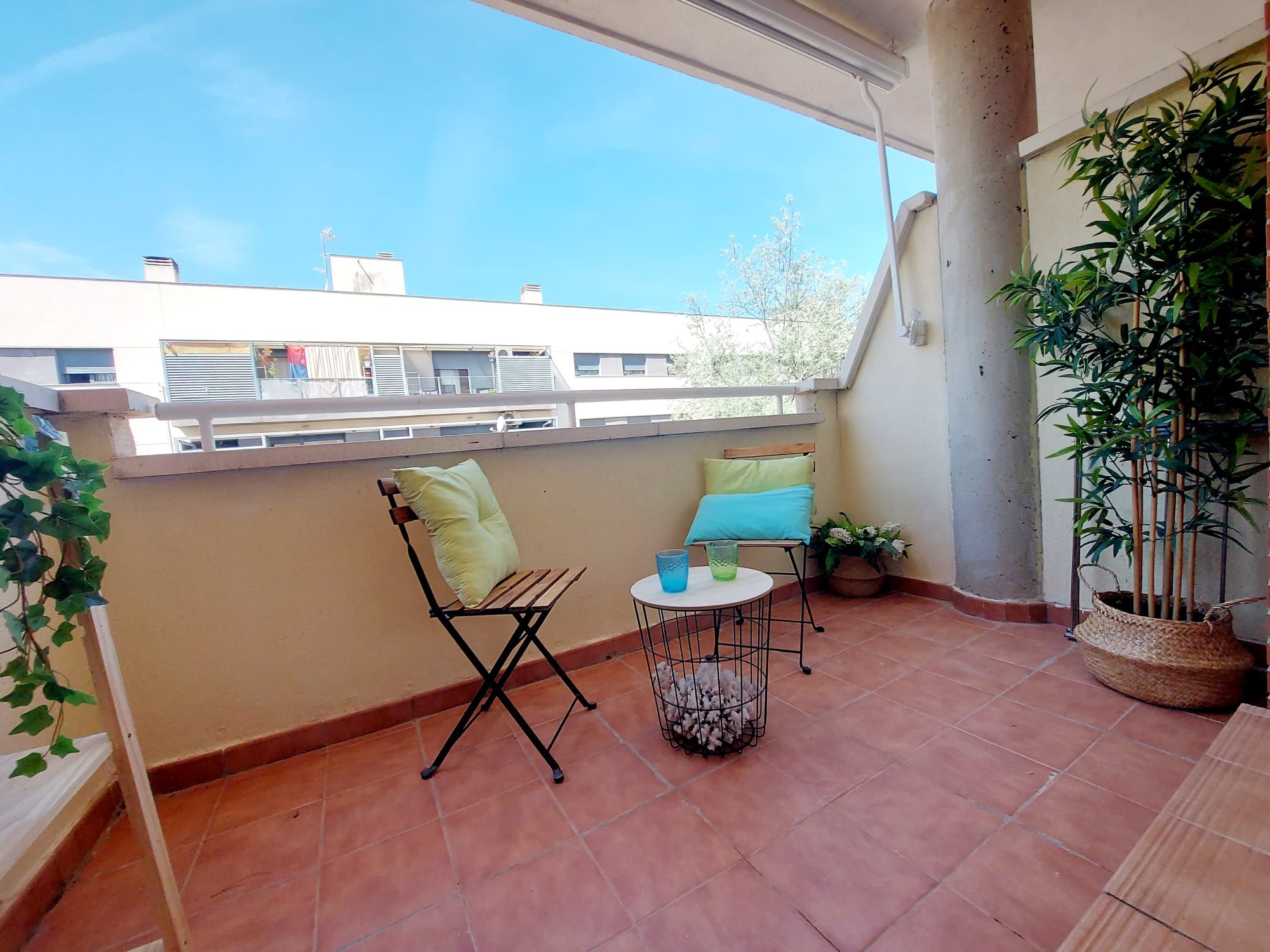 La cocina se encuentra totalmente amueblada y con electrodomésticos: horno, placa vitrocerámica y campana extractora y terraza tendedero ,con espacio de almacenaje.