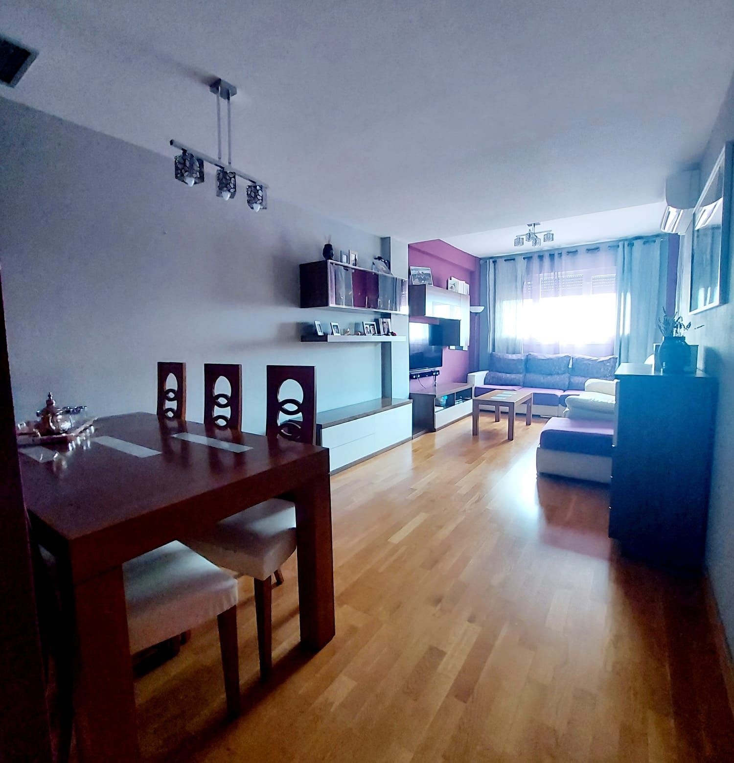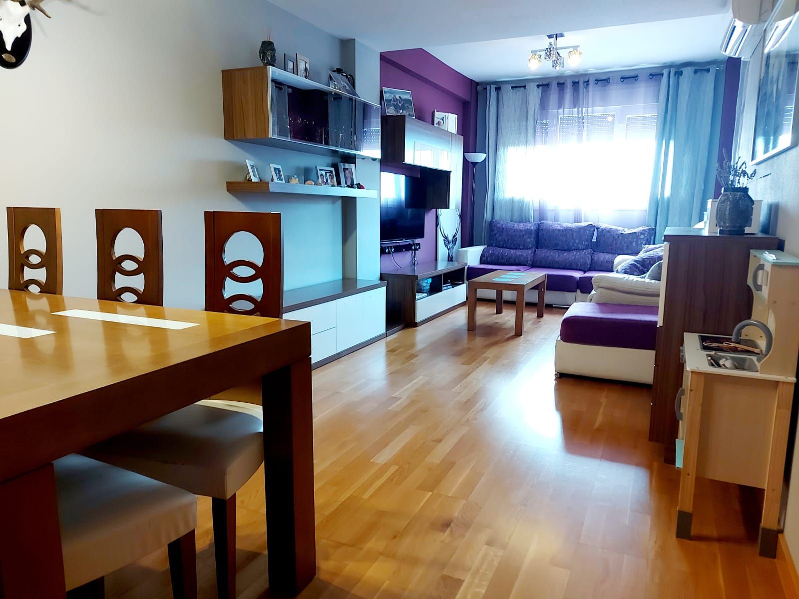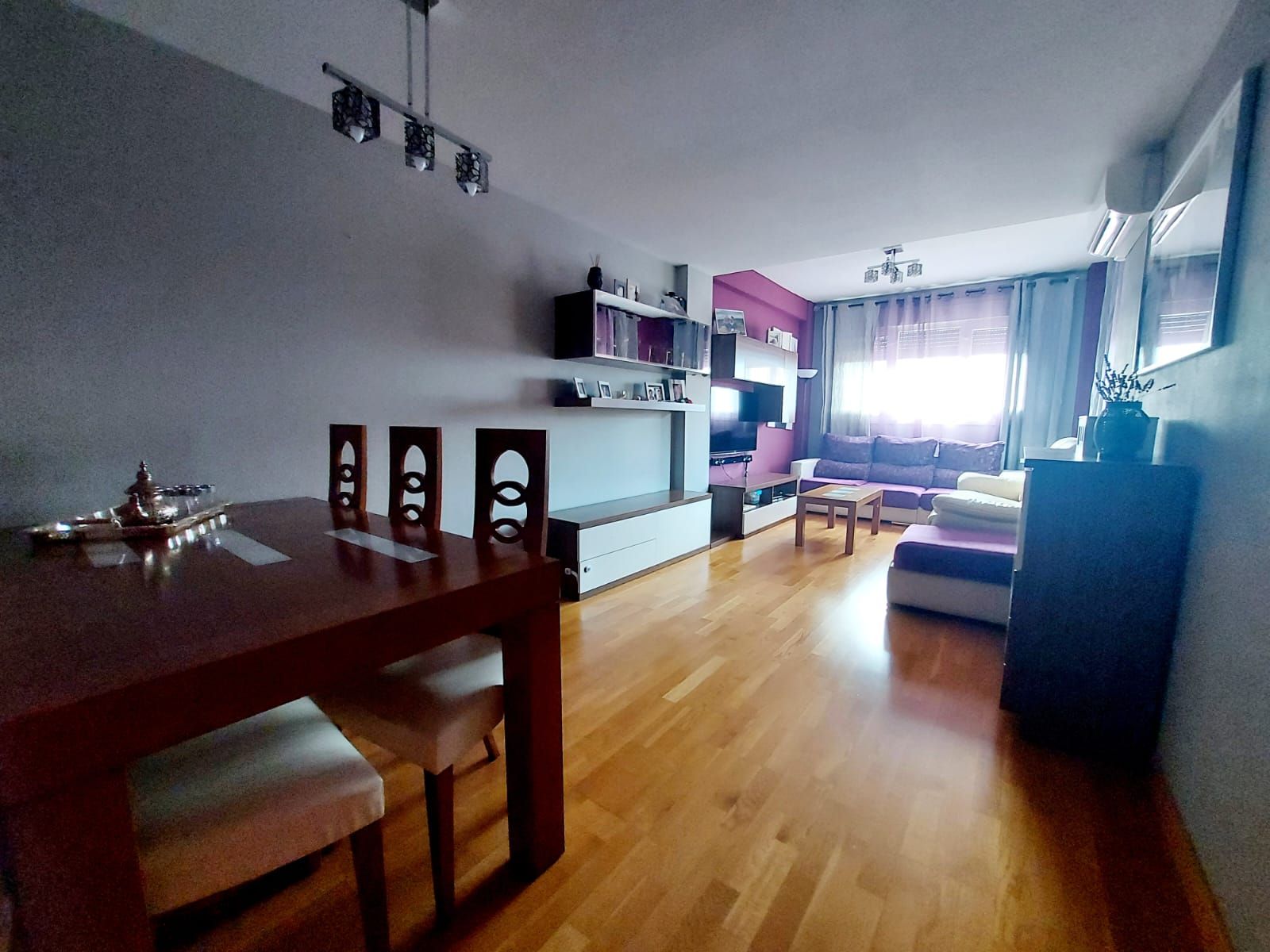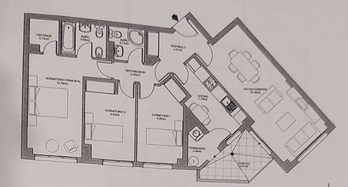 Distribuido en recibidor, amplio salón comedor, luminosa cocina equipada y amueblada con amplio tendedero cubierto. Estupenda terraza de 6 m2 con salida desde el salón y la cocina. Tres dormitorios, dos baños completos, uno de ellos en suite. Dos plazas de garaje y trastero incluidas en el precio.