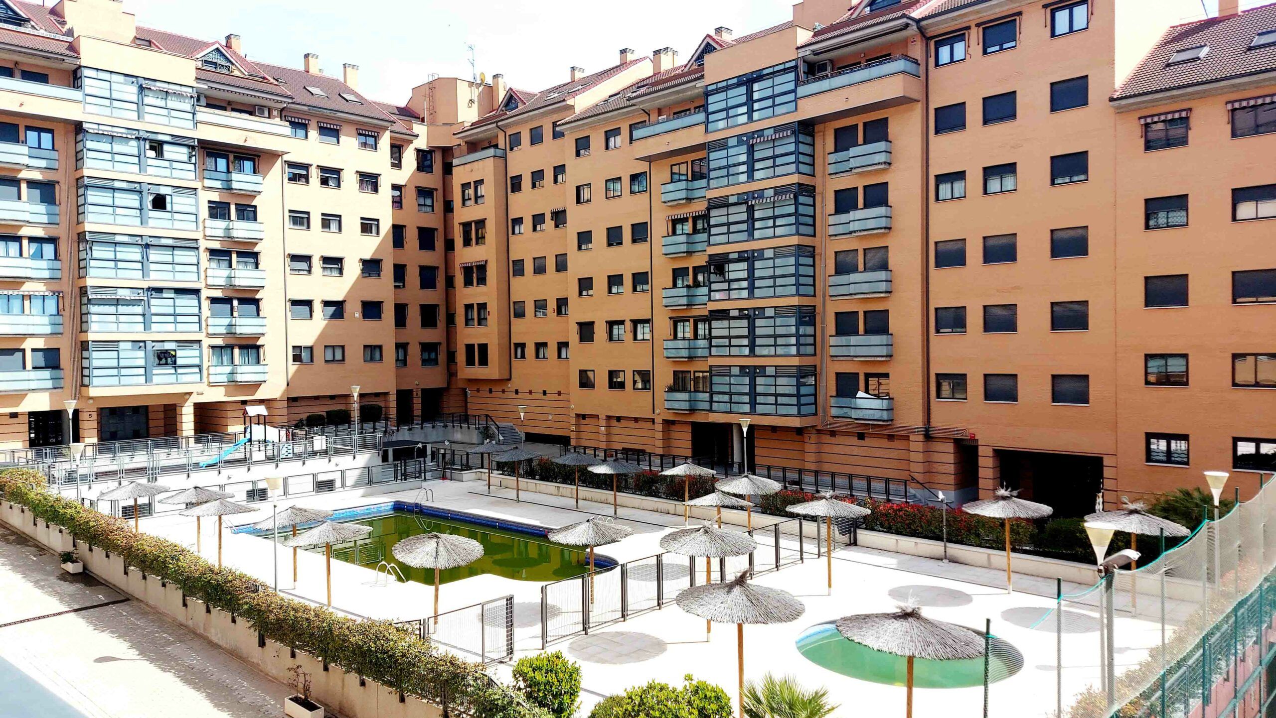 Urbanización cerrada con amplias zonas comunes, piscina, parque infantil, zonas verdes, sala comunitaria, buzones citibox y portero físico.