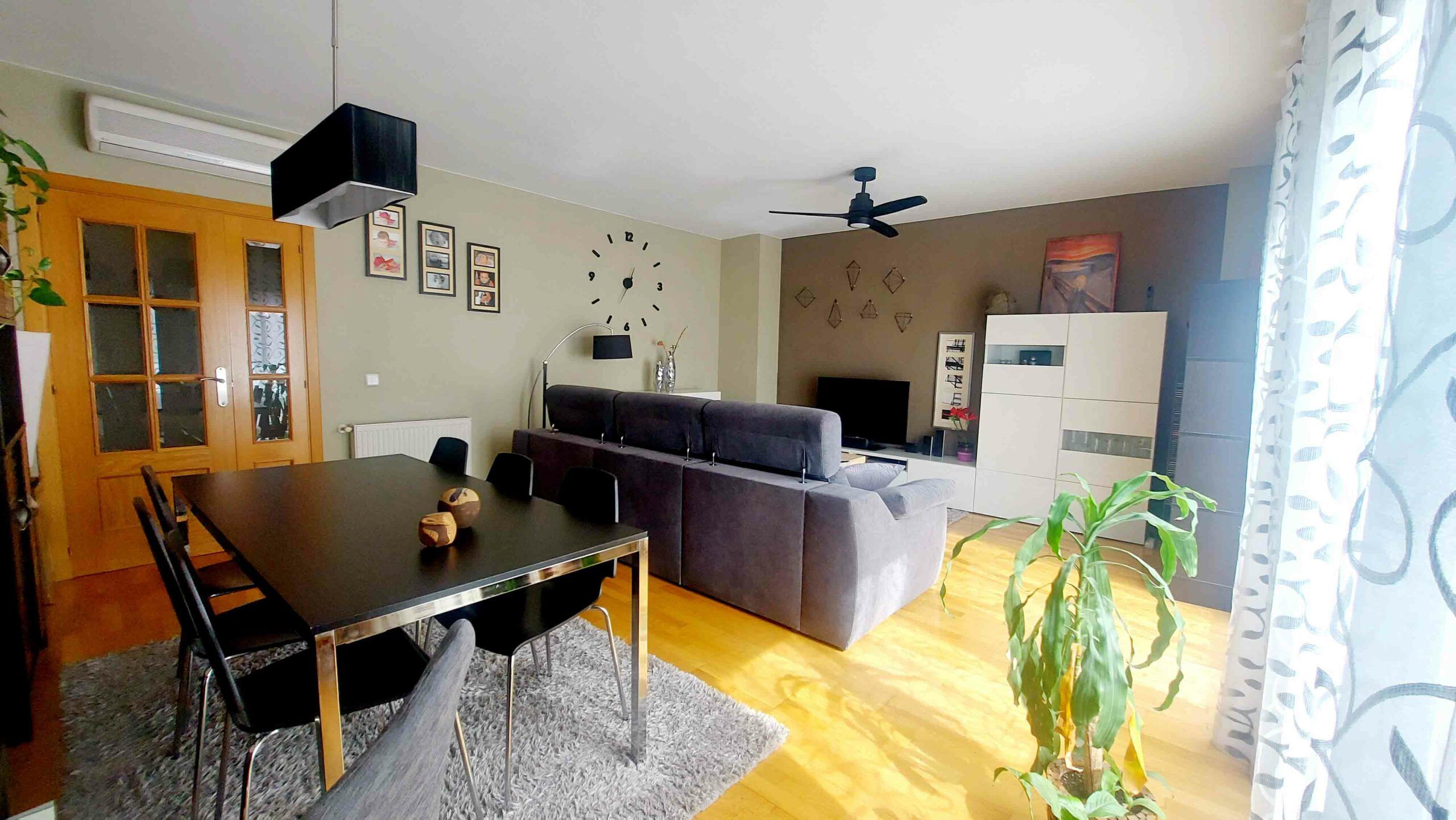 El espléndido salón, lleno de luz natural gracias a sus amplios ventanales con salida al balcón.