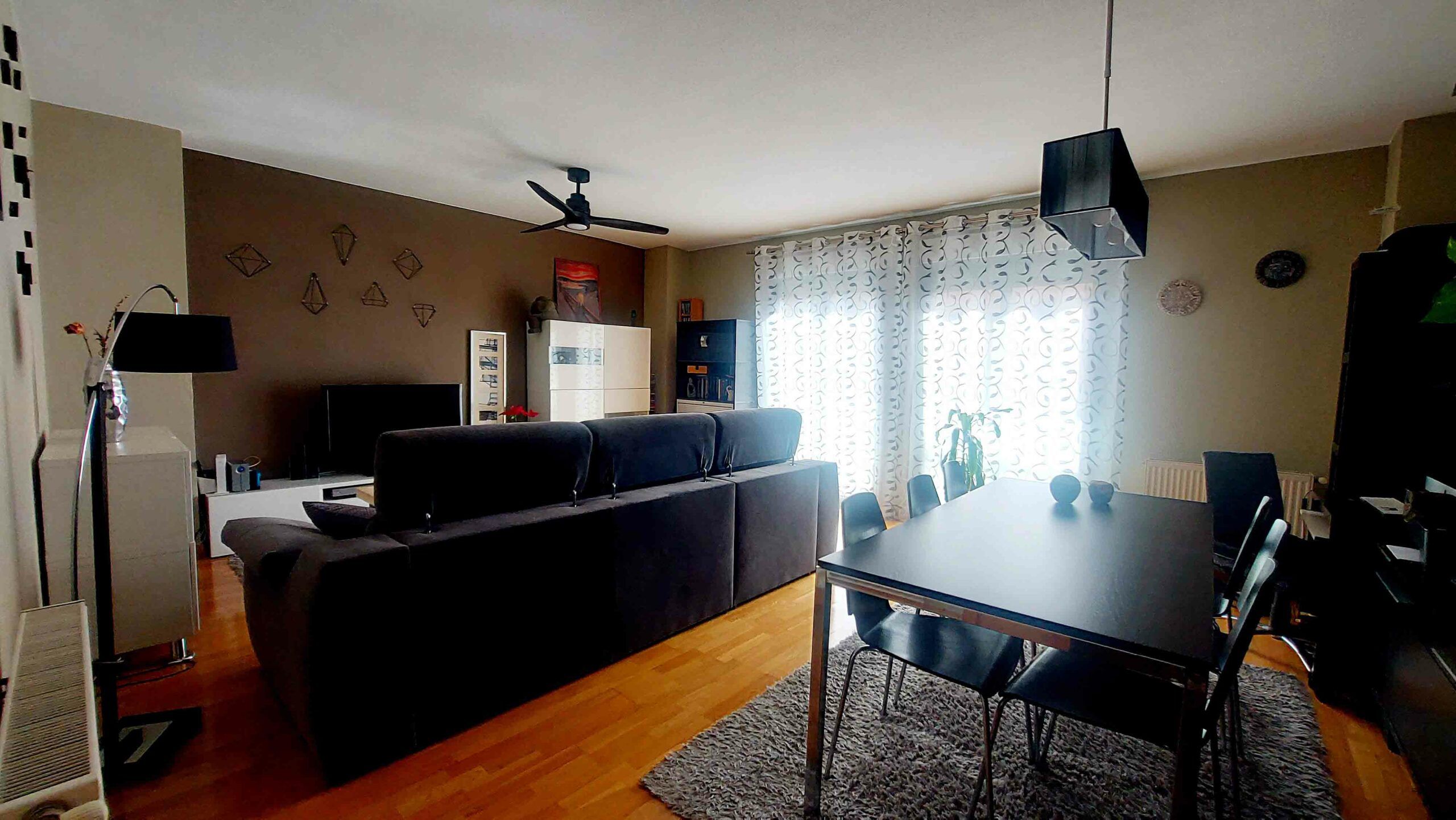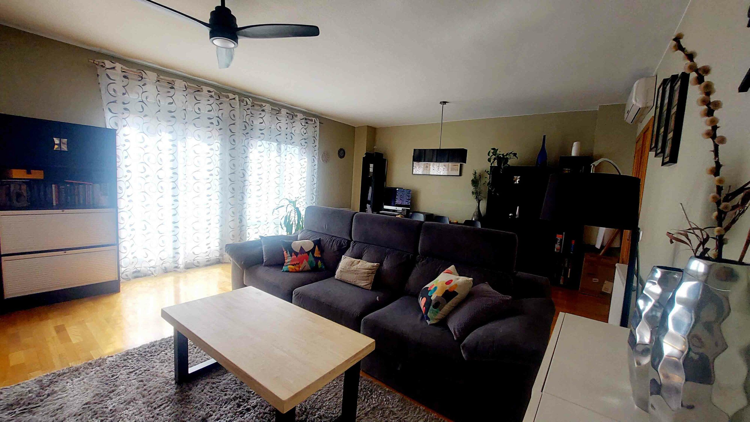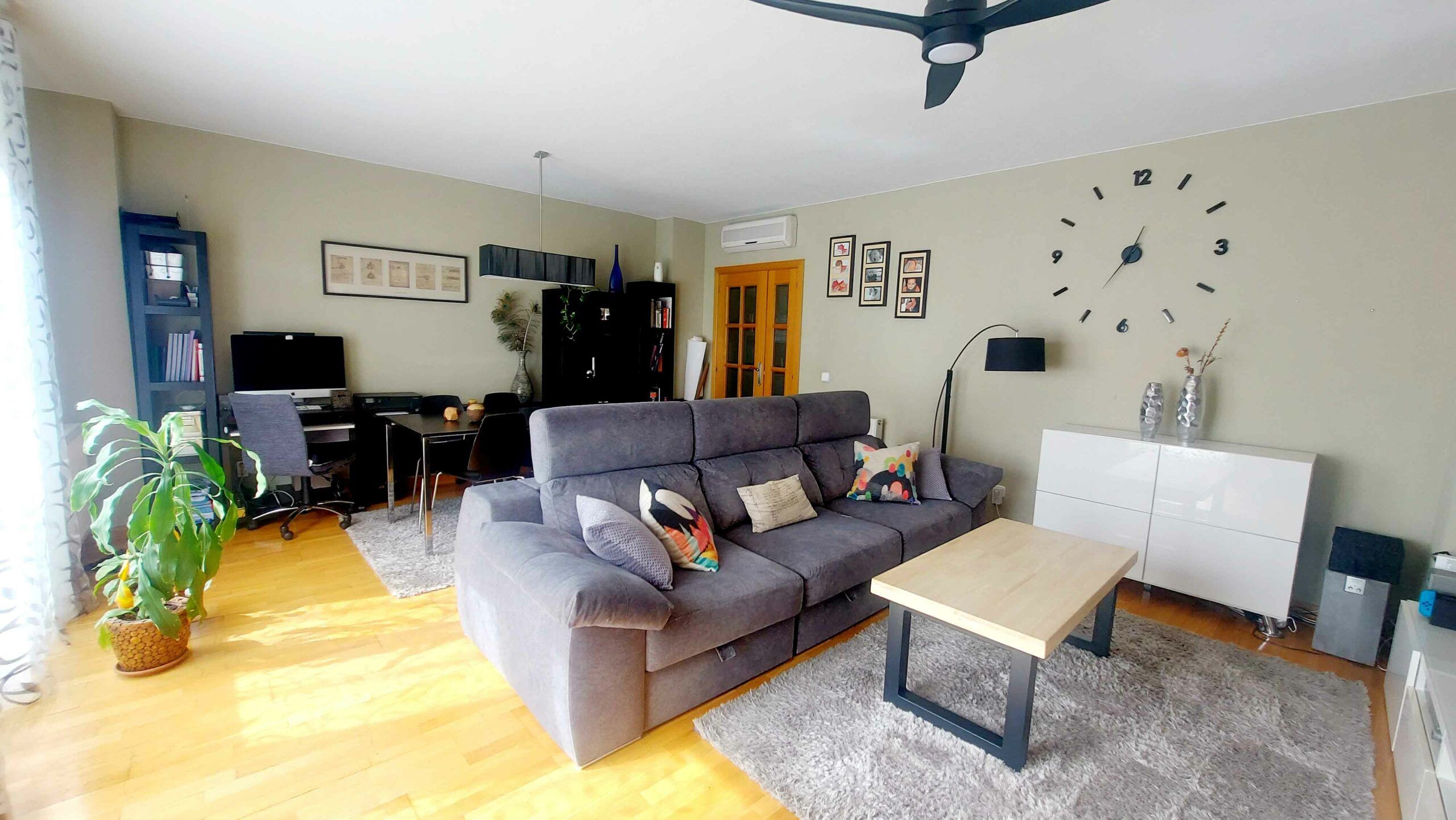 El espléndido salón, lleno de luz natural gracias a sus amplios ventanales con salida al balcón.