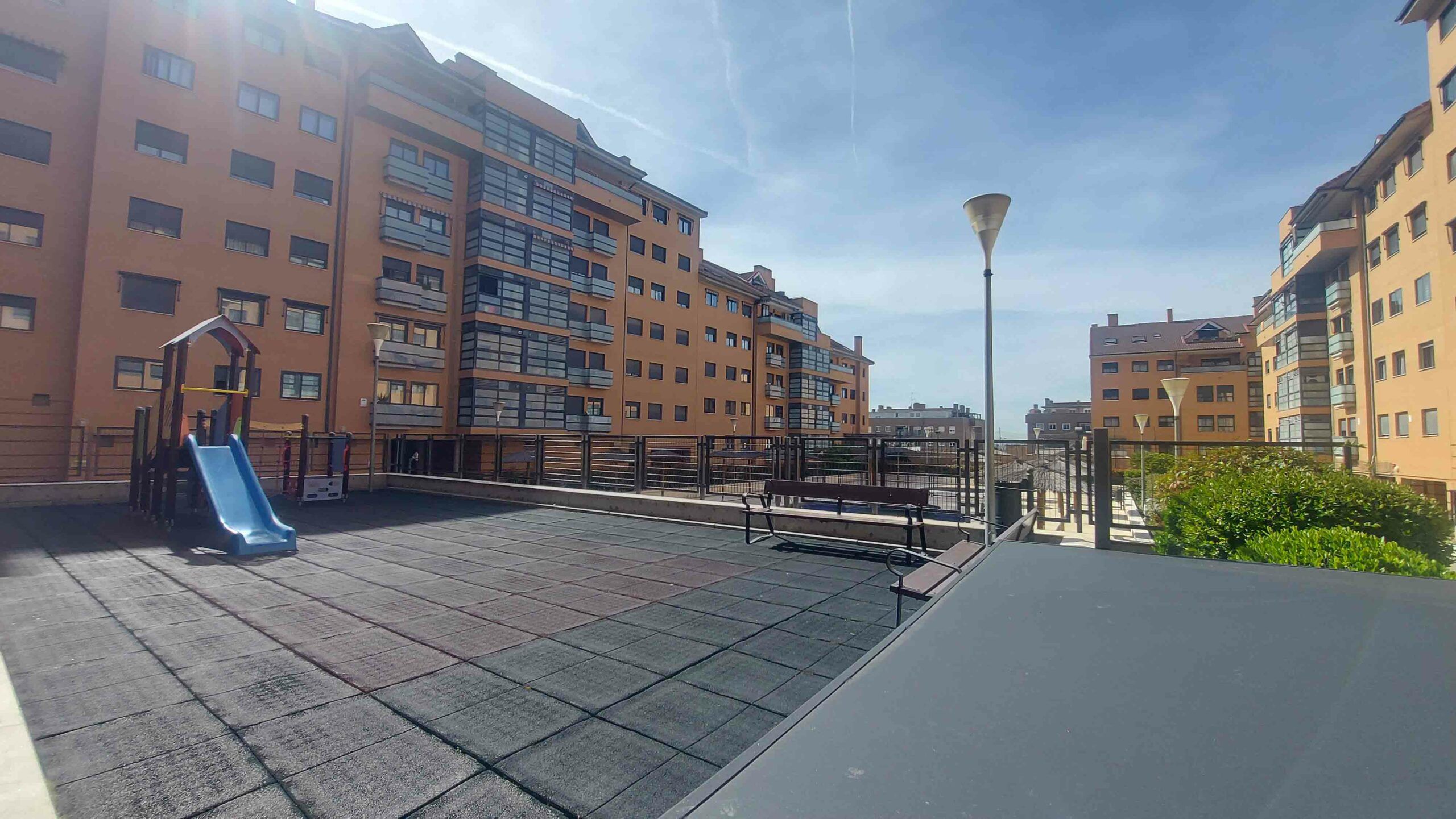 Urbanización cerrada con amplias zonas comunes, piscina, parque infantil, zonas verdes, sala comunitaria, buzones citibox y portero físico.