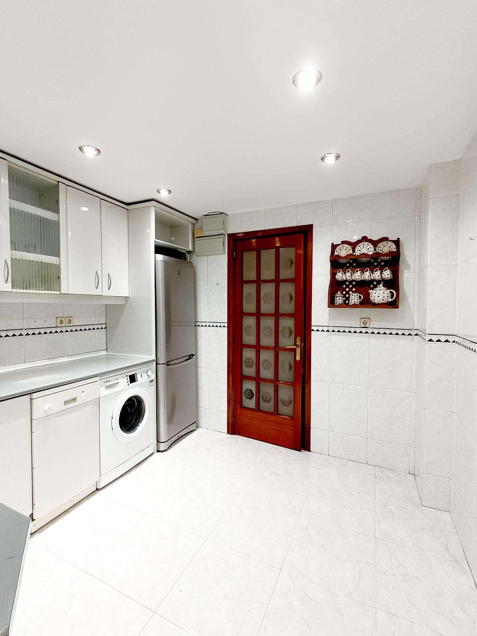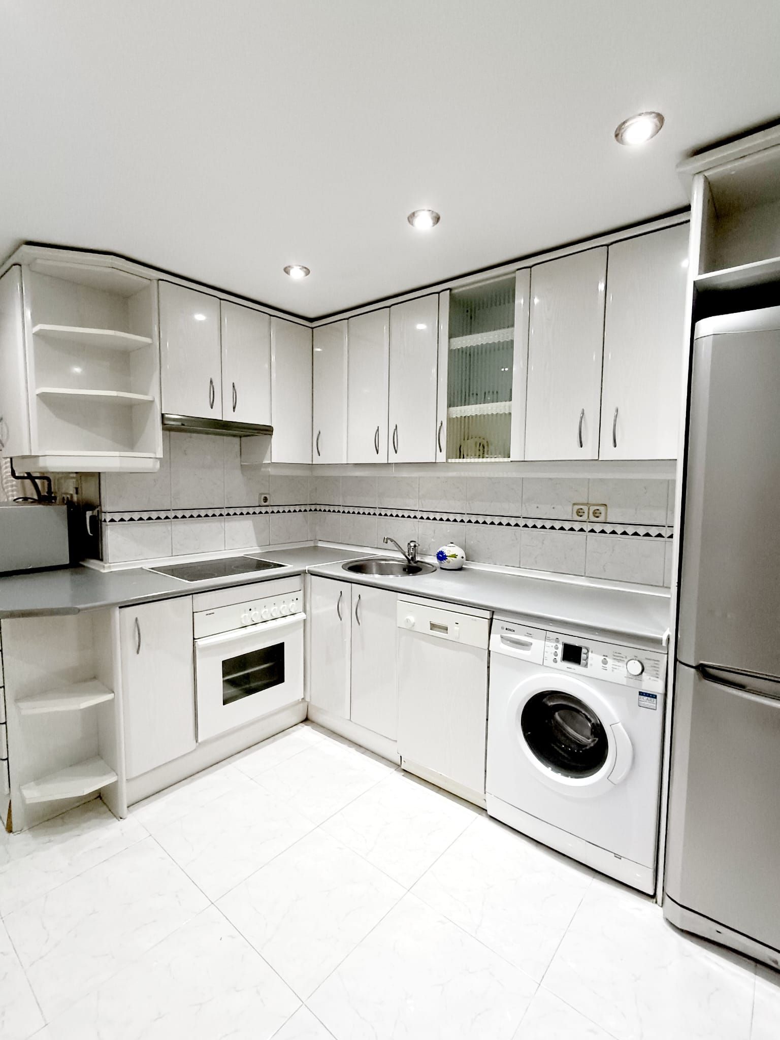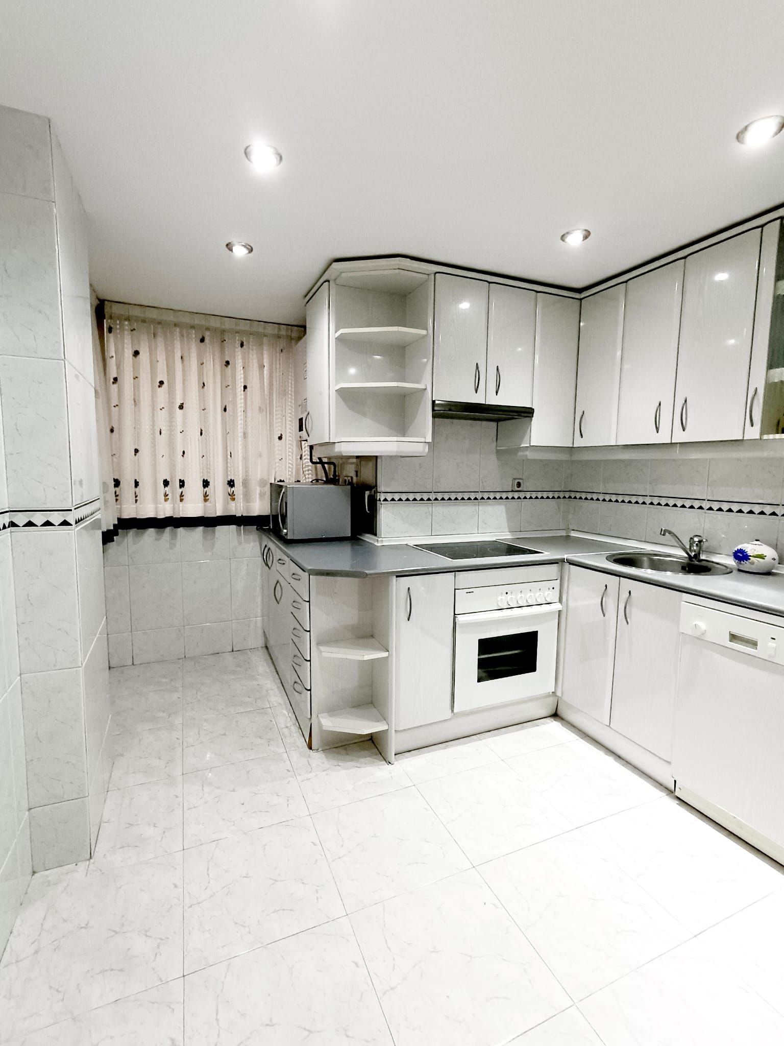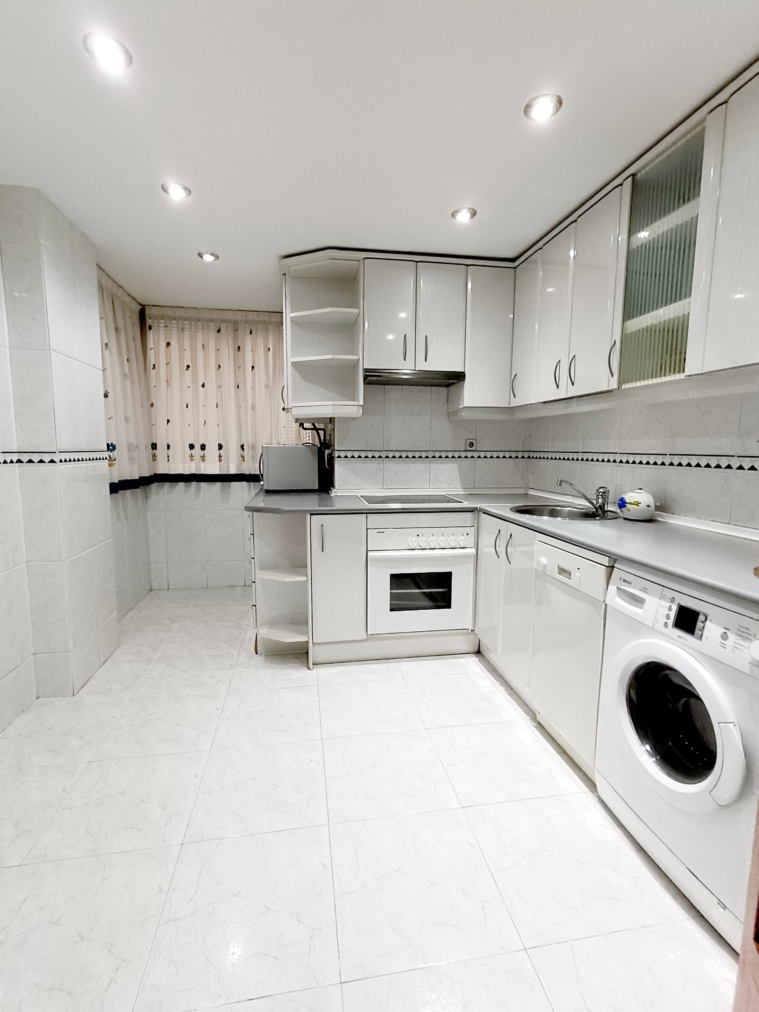 La cocina se encuentra totalmente amueblada y con electrodomésticos: horno, placa vitrocerámica y campana extractora y espacio de almacenaje.