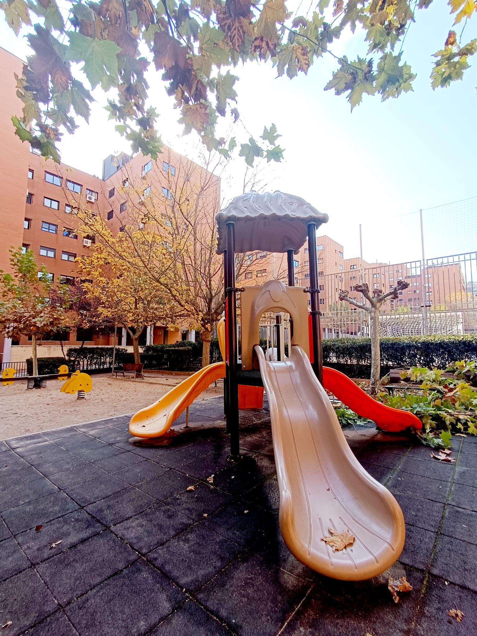 Urbanización cerrada con amplias zonas comunes, piscina, zonas verdes, parque infantil, pista de baloncesto y futbol, buzones citibox y portero físico 24H.